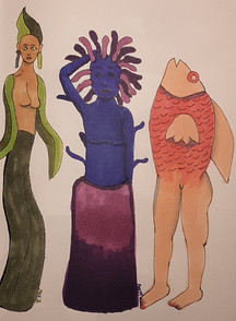 Mermay 2019. I tried to draw a mermaid a day in the whole month of May. My goals were to learn more about human and animal anatomy, how to have multiple figures interacting , and contrast and harmony of colors. Ultramarine represented the deep blue sea that mermaids are known to live in.